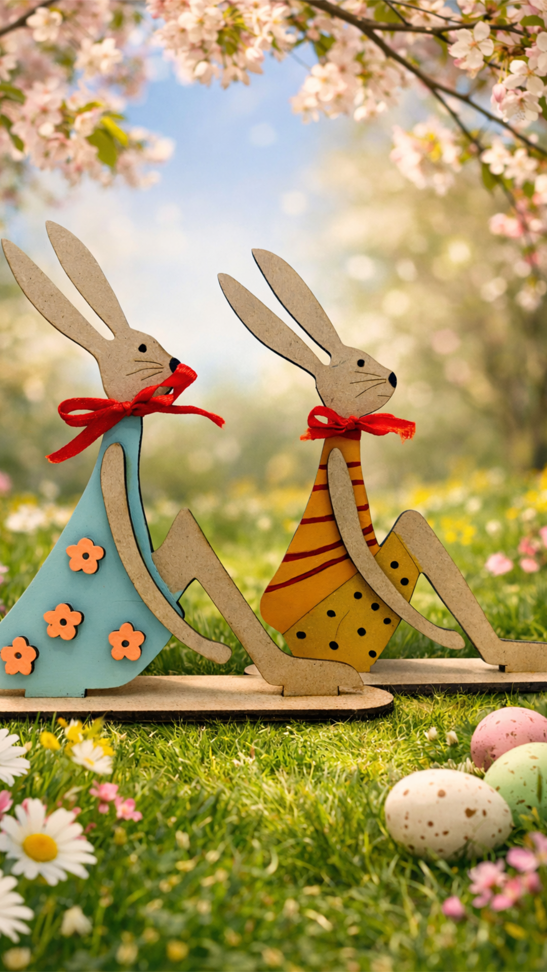 Estos encantadores conejos decorativos están diseñados para llenar tu hogar de color y calidez en la temporada de Pascua.